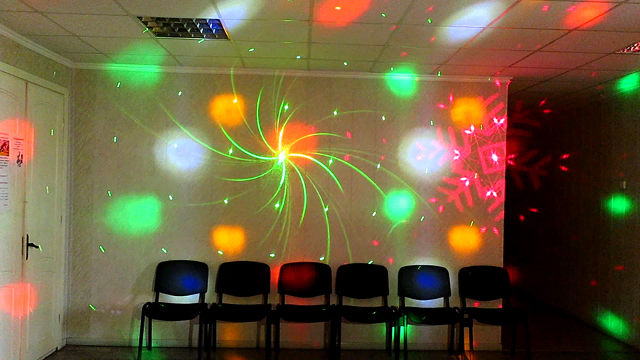 В подарок, от магазина цветомузыки для ваших пероприятий - бесплатная световая установка 5 в 1 Пати Проектор X900: